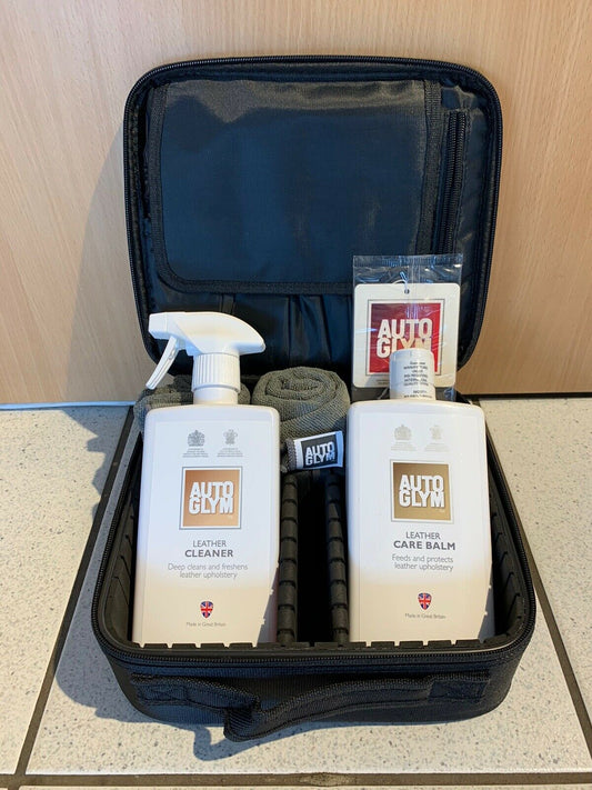 Genuine AUTOGLYM 6 Piece LEATHER CLEANING BALM VALETING BAG KIT CAR SET Black